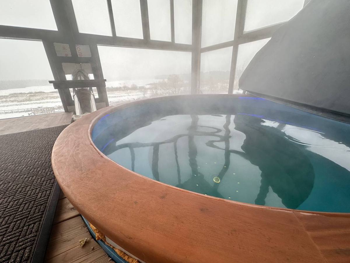 Наша тёплая купель с подогревом расположена так, чтобы вы могли наслаждаться панорамным пейзажем. Это идеальный способ снять напряжение в любое время года.